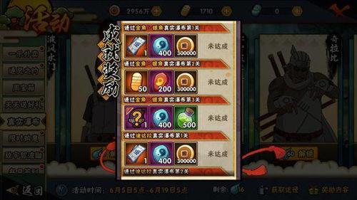 4. 活动挑战:活动期间,会有各种挑战任务等你来挑战。完成挑战,不仅能获得丰厚的奖励,还能提升你的忍者实力。